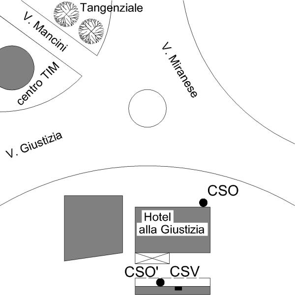 [{"simbolo_contrassegno":"B1","materializzazione":"(CSO) -Bullone sulla facciata della trattoria presso lo spigolo di sinistra."},{"simbolo_contrassegno":"V2","materializzazione":"(CSV) – Piastrina a barilotto sulla stessa facciata, subito a destra della porta centrale (non accessibile)."},{"simbolo_contrassegno":"P3","materializzazione":"(CSO') – Pozzetto in ghisa alla base della facciatadel magazzino, retrostante la trattoria, davanti alla porta centrale (non accessibile)."}]