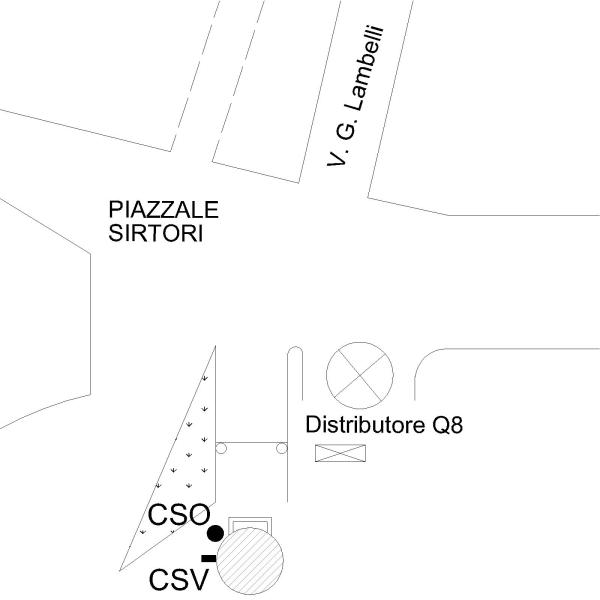 [{"simbolo_contrassegno":"B1","materializzazione":"(CSO) – Bullone infisso alla destra del portale della torre dell'acquedotto (piazzale Sirtori 11)."},{"simbolo_contrassegno":"V1","materializzazione":"(CSV) – Mensola in corrispondenza del CSO."}]