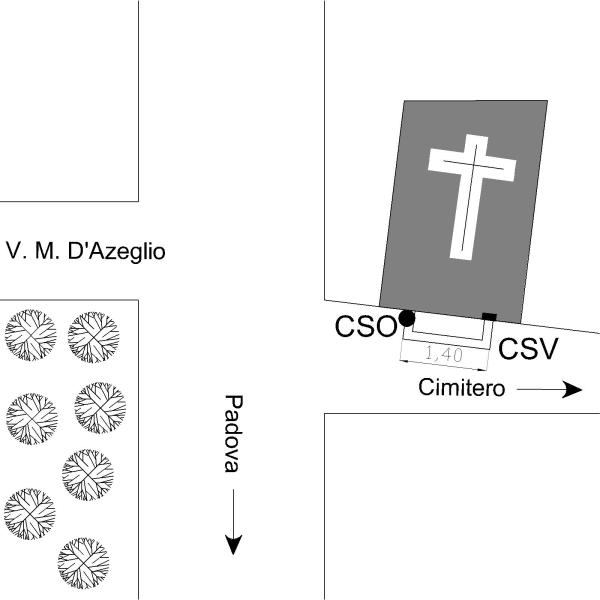 | Contrassegni | [{"simbolo_contrassegno":"P3","materializzazione":"(CSO) – Pozzetto alla base del muro di facciata a sinistra del pirmo gradino dell'ingresso della chiesa. Pozzetto rialzato con tubo di plastica, alto non misurabile."},{"simbolo_contrassegno":"V2","materializzazione":"(CSV) – Piastrina a barilotto sulla stessa facciata a destra della porta."}] |