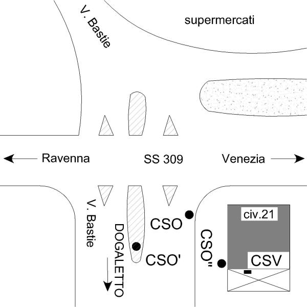 | Contrassegni | [{"simbolo_contrassegno":"B1","materializzazione":"(CSO) – Bullone infisso nel muretto in calcestruzzo della recinzione in prossimit\u00e0 dell'incrocio tra Via Bastie e la S.S. 309."},{"simbolo_contrassegno":"B2","materializzazione":"(CSO') – Chiodo anonimo infisso sullo spartitraffico dell'incrocio tra Via Bastie e il bivio per Ravenna di fronte al n. civico 21."},{"simbolo_contrassegno":"B1","materializzazione":"(CSO'') – Bullone infisso nei pressi dello spigolo del lato adiacente i locali in lamiera.(Attualmente non misurabile)"},{"simbolo_contrassegno":"V2","materializzazione":"(CSV) – Piastrina a barilotto nei pressi del CSO' ma sull'altro lato dello spigolo.(Attualmente non misurabile)"}] |