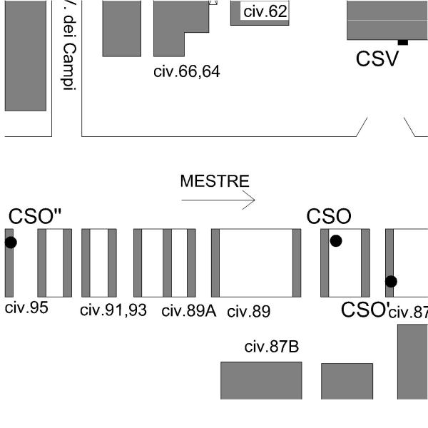 [{"simbolo_contrassegno":"B1","materializzazione":"(CSO) – Bullone infisso nella spalla sinistra del ponticello di accesso ai n\u00b0. civici 89 e 87."},{"simbolo_contrassegno":"B2","materializzazione":"(CSO') – Chiodo anonimo cementato nella spalla desttra del ponticello di accesso ai n\u00b0. civico 87."},{"simbolo_contrassegno":"V5","materializzazione":"(CSV) – Targa con linea incisa sulla facciata della casa a destra del portone n. 58."},{"simbolo_contrassegno":"B4","materializzazione":"(CSO'') – Centrino universale (orizzontale) – infisso sulla spalla destra del ponticello di ingresso al n. civico 95."}]