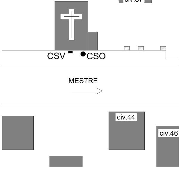 | Contrassegni | [{"simbolo_contrassegno":"P5","materializzazione":"(CSO) – IV Categoria – Pozzetto alla base della facciata in corrispondenza della lesena destra. Protetto da tubo con tappo a livello del suolo."},{"simbolo_contrassegno":"V5","materializzazione":"(CSV) – Targa con linea incisa sulla facciata in corrispondenza del CSO."}] |