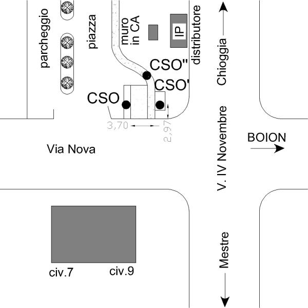 | Contrassegni | [{"simbolo_contrassegno":"B4","materializzazione":"(CSO) – Centrino universale (orizzontale) posto sul muretto in c.a. che delimita l'aiuola della piazza sottostante il bensinaio.Posto a m. 2.97 dal marciapiede."},{"simbolo_contrassegno":"B2","materializzazione":"(CSO') – Chiodo anonimo posto all'interno del benzinaio IP sul basamento della cabina elettrica ENEL e vicino al palo in c.a. della linea telefonica."},{"simbolo_contrassegno":"B7","materializzazione":"(CSO'') – Bulloncino (GPS tema2000) posto sul muretto in c.a. della recinzione del parcheggio del benzinaio IP."}] |