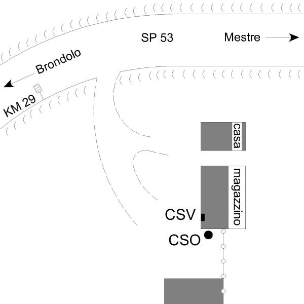 [{"simbolo_contrassegno":"B1","materializzazione":"(CSO) – Bullone infisso sulla faccia laterale destra , spigolo sinistro del magazzino."},{"simbolo_contrassegno":"V5","materializzazione":"(CSV) – Targa con linea incisa sulla facciata presso lo spigolo destro del magazzino. Attualmente non misurabile."}]