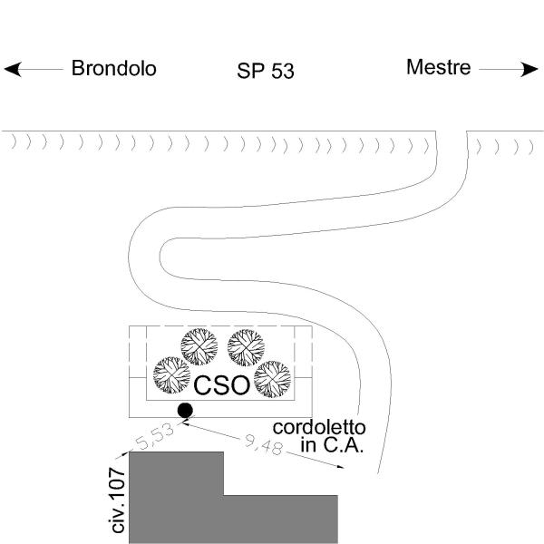 | Contrassegni | [{"simbolo_contrassegno":"B4","materializzazione":"(CSO) – Centrino universale (orizzontale) infisso sul cordoletto in c.a. che sostiene la recinzione dell'aiuola di fronte la casa e a m 5.53 dallo spigolo sinistro e a m 9.48 dallo spigolo destro guardando la provinciale 53."}] |