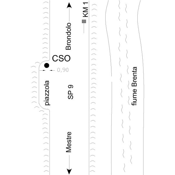| Contrassegni | [{"simbolo_contrassegno":"P5","materializzazione":"(CSO) – IV Categoria – Pozzetto all'inizio della piazzola sul ciglio destro della strada andando verso Mestre. Protetto da un tubo di plastica e tappo in ghisa IGM."}] |