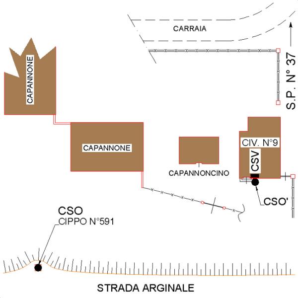 | Contrassegni | [{"simbolo_contrassegno":"B2","materializzazione":"(CSO) – CHIODO ANONIMO – sulla sommit\u00e0 del cippo n\u00b0591, a sinistra della strada arginale nella direzione di Pila."},{"simbolo_contrassegno":"B2","materializzazione":"(CSO') – CHIODO ANONIMO – sulla soglia di accesso al civico n\u00b0 9."},{"simbolo_contrassegno":"V5","materializzazione":"(CSV) – PIASTRINA DI ALTRO ENTE – (CSL Colon Delta Padano) in corrispondenza del cso."}] |