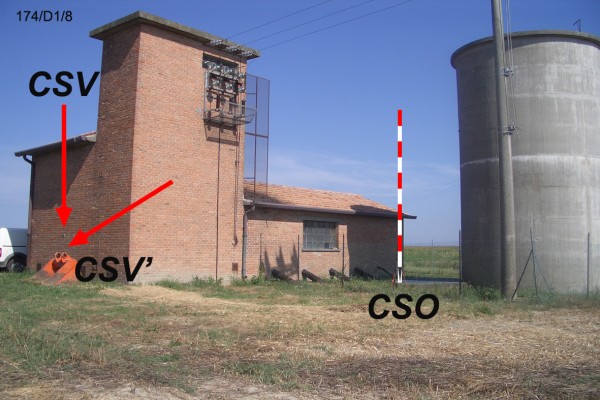 | Contrassegni | [{"simbolo_contrassegno":"B2","materializzazione":"(CSO) – CHIODO ANONIMO – (Regione Veneto) sul muretto adiacente il serbatoio dell'acqua."},{"simbolo_contrassegno":"V5","materializzazione":"(CSV) – TARGA CON LINEA INCISA – (Consorzio Irriguo Rovigo) sulla cabina in muratura, lato strada presso lo spigolo sinistro."},{"simbolo_contrassegno":"V7","materializzazione":"(CSV') – CHIODO UNIVERSALE (VERTICALE) – (Consozio Irriguo Rovigo) in corrispondenza ed al di sotto il csv."}] |