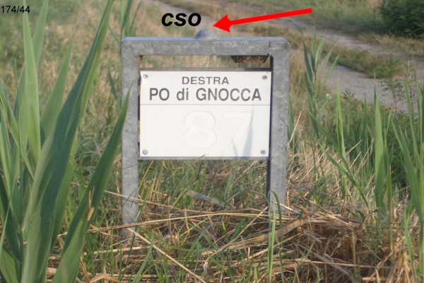 | Contrassegni | [{"simbolo_contrassegno":"B2","materializzazione":"(CSO) – CHIODO ANONIMO – cippo metallico sull'argine recante l'indicazione \"87 destra Po di Gnocca\"."},{"simbolo_contrassegno":"V5","materializzazione":"(CSV) – TARGA CON LINEA INCISA – (L.Carra-Parma) sulla facciata Ovest presso lo spigolo sinistro dell'edificio verso la strada."}] |