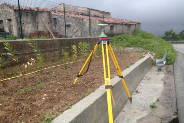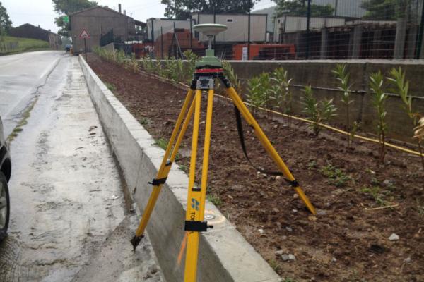 Centrino metallico orizzontale di tipo chiodo con rondella ARPAB Regione Basilicata infisso sulla sommità del cordolo in C.L.S. con zanella stradale.