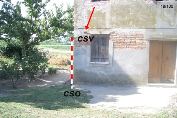 [{"simbolo_contrassegno":"P3","materializzazione":"(CSO) – CHIUSINO IN GHISA – alla base della facciata principale presso lo spigolo sinistro."},{"simbolo_contrassegno":"V2","materializzazione":"(CSV) – PIASTRINA A BARILOTTO – sulla facciata in corrispondenza del cso."}]