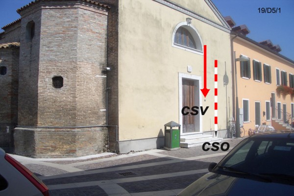 | Contrassegni | [{"simbolo_contrassegno":"P5","materializzazione":"(CSO) – POZZETTO – in prossimit\u00e0 dello spigolo destro dei gradini di accesso alla chiesa (protetto da tubo in plastica e coperchio in ghisa)."},{"simbolo_contrassegno":"V3","materializzazione":"(CSV) – PIASTRINA ANTICA – sulla facciata in corrispondenza del cso."}] |