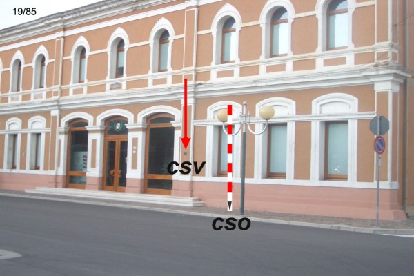| Contrassegni | [{"simbolo_contrassegno":"P3","materializzazione":"(CSO) – CHIUSINO IN GHISA – alla base della facciata a destra della scalinata."},{"simbolo_contrassegno":"V5","materializzazione":"(CSV) – TARGA CON LINEA INCISA – sulla facciata anzidetta sulla lesena destra della vetrata a destra dell'ingresso."}] |