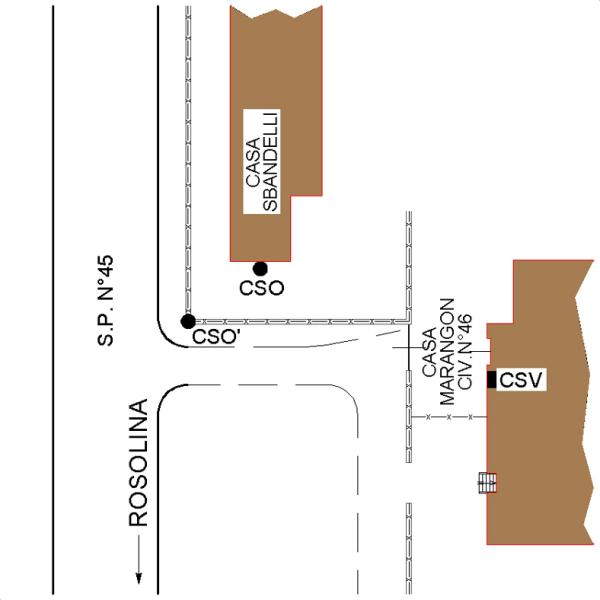 | Contrassegni | [{"simbolo_contrassegno":"B1","materializzazione":"(CSO) – BULLONE – nella mezzeria del lato destro di casa Sbandelli."},{"simbolo_contrassegno":"B2","materializzazione":"(CSO') – CHIODO ANONIMO – sul muretto di recinzione vicino allo spigolo destro."},{"simbolo_contrassegno":"V5","materializzazione":"(CSV) – TARGA CON LINEA INCISA – (Catasto) a destra della porta d'ngresso della casa Marangon al civico 46."}] |