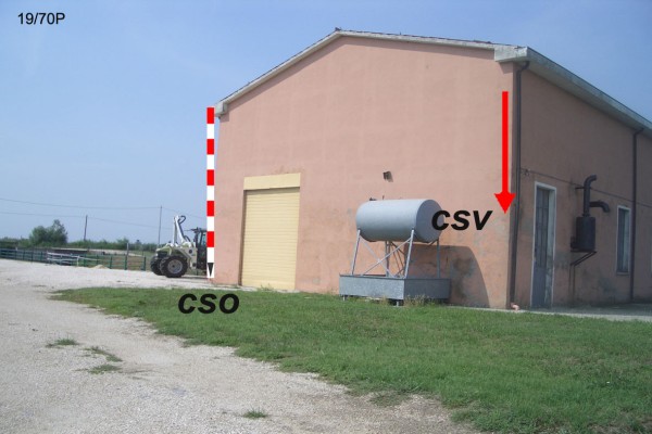 [{"simbolo_contrassegno":"B1","materializzazione":"(CSO) – BULLONE – sulla parete destra presso lo spigolo anteriore sinistro."},{"simbolo_contrassegno":"V5","materializzazione":"(CSV) – TARGA CON LINEA INCISA – (Catasto) sulla parete del cso presso lo spigolo destro."}]