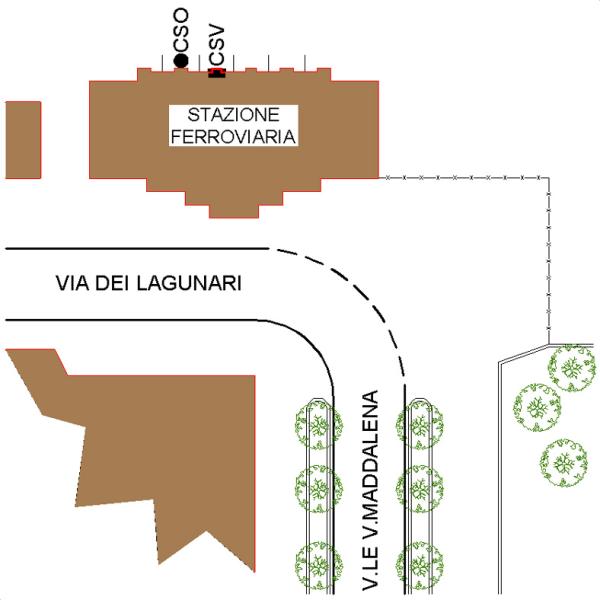 [{"simbolo_contrassegno":"B1","materializzazione":"(CSO) – BULLONE – sulla facciata verso i binari, fra l'entrata e l'ex sala di prima classe."},{"simbolo_contrassegno":"V2","materializzazione":"(CSV) – PIASTRINA A BARILOTTO – sulla facciata, lato binari, a sinistra della porta di entrata."}]