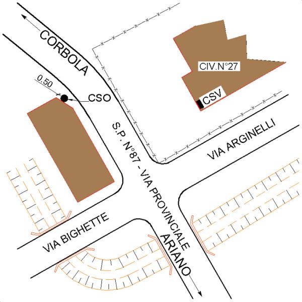 | Contrassegni | [{"simbolo_contrassegno":"P5","materializzazione":"(CSO) – POZZETTO – in prossimita' dello spigolo destro della facciata rivolta verso la strada, a 0.50 m dallo spigolo, protetto da chiusino in calcestruzzo."},{"simbolo_contrassegno":"V5","materializzazione":"(CSV) – TARGA CON LINEA INCISA – (Catasto) sulla facciata presso lo spigolo destro del fabbricato al civico 27, prospiciente l'edificio del cso."}] |