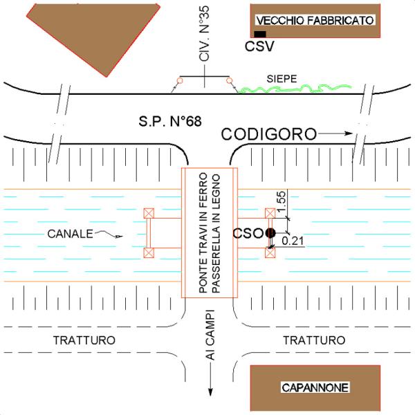 | Contrassegni | [{"simbolo_contrassegno":"B4","materializzazione":"(CSO) – CENTRINO UNIVERSALE (ORIZZONTALE) – nella trave in cemento sita a sinistra, direzione accesso ai campi, sul ponte in ferro e legno."},{"simbolo_contrassegno":"V2","materializzazione":"(CSV) – PIASTRINA A BARILOTTO – sulla facciata fronte strada, in prossimita' dello spigolo sinistro."}] |