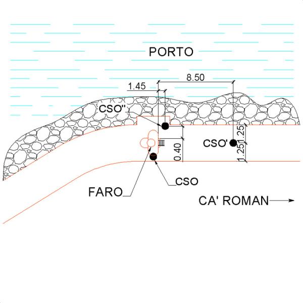 | Contrassegni | [{"simbolo_contrassegno":"B1","materializzazione":"(CSO) – BULLONE – sul basamento in cemento del faro fronte vegetazione."},{"simbolo_contrassegno":"B4","materializzazione":"(CSO') – CENTRINO UNIVERSALE (ORIZZONTALE) – nella mezzeria del camminamento a 8.50 m. dal faro in direzione C\u00e0 Roman."},{"simbolo_contrassegno":"B2","materializzazione":"(CSO'') – CHIODO ANONIMO – sul camminamento, in corrispondenza della risega, vicino al faro."}] |