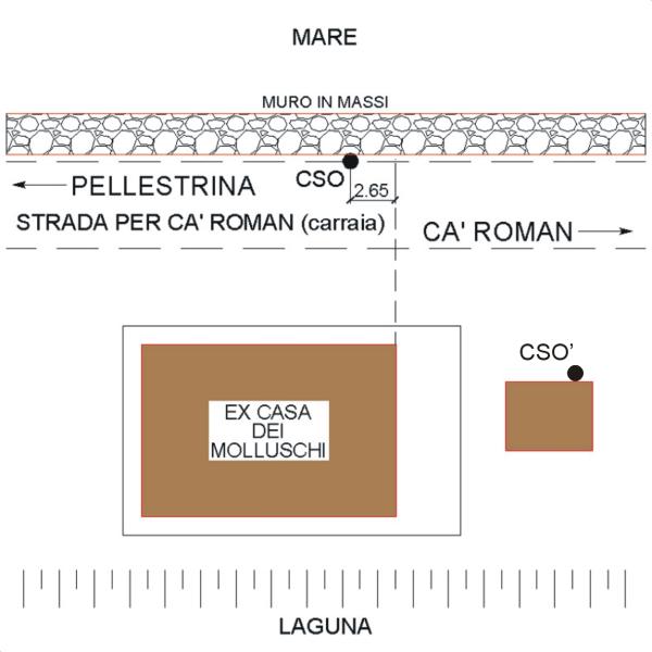 [{"simbolo_contrassegno":"B1","materializzazione":"(CSO) – BULLONE – nel muro in massi lungo la carraia denominata Strada per Ca' Roman di fronte al fabbricato Ex Cooperativa dei Molluschi a 2.65 m rispetto allo spigolo destro fronte mare del suddetto fabbricato."},{"simbolo_contrassegno":"B1","materializzazione":"(CSO') – BULLONE – infisso in prossimit\u00e0 dello spigolo sinistro,del fabbricato adibito a deposito (non misurato)."}]