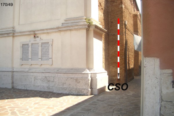 | Contrassegni | [{"simbolo_contrassegno":"B1","materializzazione":"(CSO) – BULLONE – sul lato destro della chiesa nella prima risega fronte alla piazza."},{"simbolo_contrassegno":"B3","materializzazione":"(CSO') – CIRCOLO INCISO – sulla soglia della porta principale, presso lo stipite destro."},{"simbolo_contrassegno":"B2","materializzazione":"(CSO'') – CHIODO ANONIMO – sul secondo gradino del monumento sito nel piazzale della chiesa."},{"simbolo_contrassegno":"V3","materializzazione":"(CSV) – PIASTRINA ANTICA – sulla facciata a destra della porta."}] |