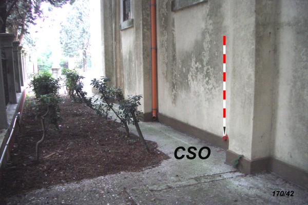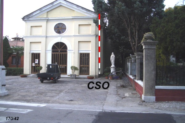 [{"simbolo_contrassegno":"B1","materializzazione":"(CSO) – BULLONE – nel muro laterale destro della chiesa, a 9.50 m dallo spigolo di facciata."}]