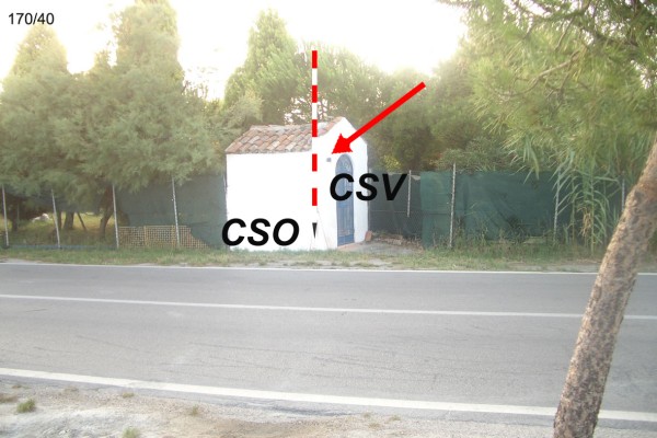 [{"simbolo_contrassegno":"B1","materializzazione":"(CSO) – BULLONE – nella facciata verso la strada lato destro vicino allo spigolo."},{"simbolo_contrassegno":"B2","materializzazione":"(CSO') – CHIODO ANONIMO – sulla banchina a mare in allineamneto alla facciata sud del capitello."},{"simbolo_contrassegno":"V6","materializzazione":"(CSV) – PIASTRINA CON CILINDRETTO – sulla facciata lato sinistro."}]