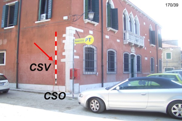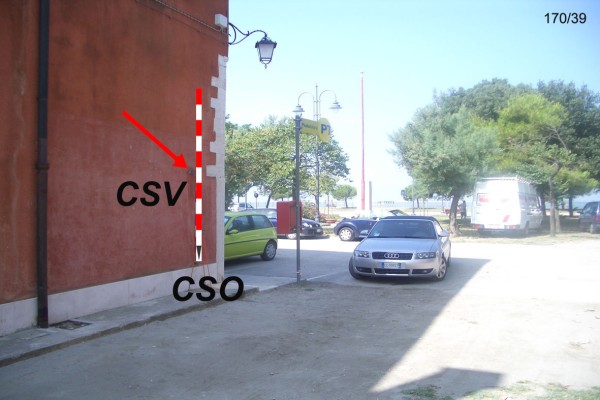 | Contrassegni | [{"simbolo_contrassegno":"B1","materializzazione":"(CSO) – BULLONE – sulla facciata laterale sinistra a 1.00 m dallo spigolo in fregio alla laguna."},{"simbolo_contrassegno":"V6","materializzazione":"(CSV) – PIASTRINA CON CILINDRETTO – in corrispondenza del cso."}] |