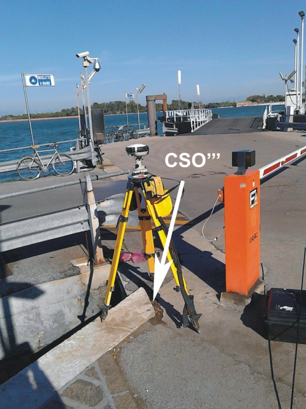 [{"simbolo_contrassegno":"B1","materializzazione":"(CSO) – Bullone infisso sulla facciata dell'edificio di sinistra, a sinistra della scaletta d'ingresso."},{"simbolo_contrassegno":"B3","materializzazione":"(CSO') – Cerchio inciso sul primo gradino della scaletta d'ingresso all'edificio di sinistra, nell'angolo sinistro."},{"simbolo_contrassegno":"P3","materializzazione":"(CSO'') – Chiusino in ghisa di III cat. interrato a sinistra della scaletta d'accesso alla parte centrale del fabbricato. A non misurato."},{"simbolo_contrassegno":"B4","materializzazione":"(CSO''') – Centrino Universale cementato all'inizio del cordolo sinistro, all'imbarco del ferry boat. Coincidente con il vertice Geotrav 051713."}]