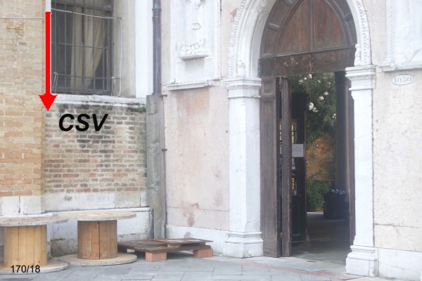 | Contrassegni | [{"simbolo_contrassegno":"P5","materializzazione":"(CSO) – POZZETTO – alla base della facciata, a destra della porta."},{"simbolo_contrassegno":"V4","materializzazione":"(CSV) – PIASTRINA DI ALTRO ENTE – (UIMA) sulla parete laterale a sinistra dell'ingresso."}] |