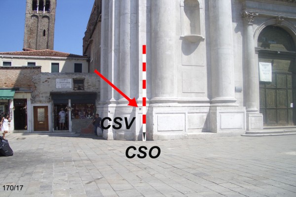 | Contrassegni | [{"simbolo_contrassegno":"P5","materializzazione":"(CSO) – POZZETTO – alla base della facciata della chiesa, nell'angolo formato da questa con l'ultima colonna di sinistra, al piano stradale con coperchio in ghisa."},{"simbolo_contrassegno":"V1","materializzazione":"(CSV) – MENSOLA – sulla facciata della chiesa in corrispondenza del cso."}] |