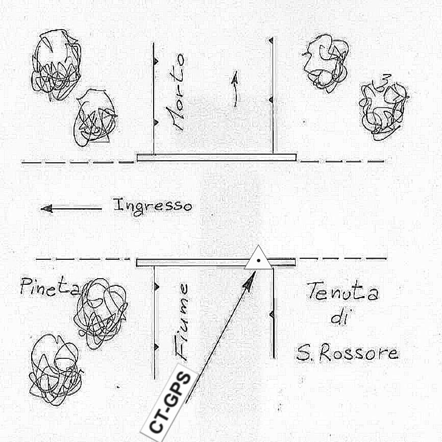 | Materializzazione | Centrino in acciaio inox infisso sulla sommità del parapetto in muratura del ponte sul fiume Morto, posto sulla spalletta lato Est nei pressi dell'ingresso della Tenuta di San Rossore. |