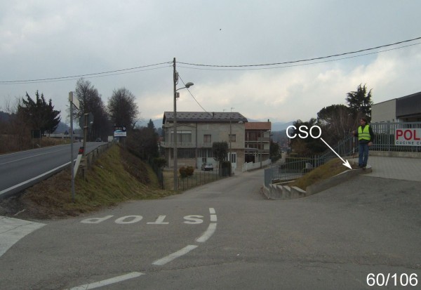| Contrassegni | [{"simbolo_contrassegno":"B4","materializzazione":"(CSO) – Centrino universale infisso sulla sommit\u00e0 del muretto in cemento armato al bordo dell'aiuola a sinistra dell'ingresso al negozio d'arredamenti."},{"simbolo_contrassegno":"B1","materializzazione":"(CSO') – Bullone infisso alla base della facciata lato strada della casa al numero civico 67, leggermente incassato nel rivestimento in pietra, ma comunque misurabile."}] |