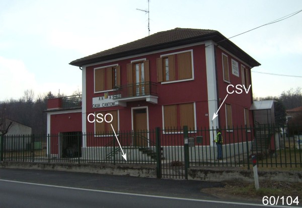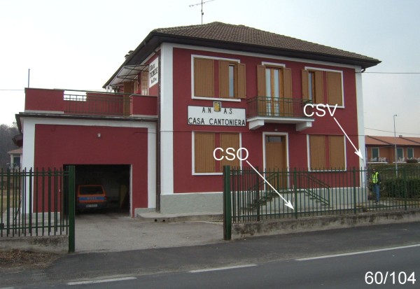 [{"simbolo_contrassegno":"P3","materializzazione":"(CSO) – Pozzetto in ghisa interrato al centro della base delle scale d'accesso, coperto da chiusino quadrato in cemento."},{"simbolo_contrassegno":"V1","materializzazione":"(CSV) – Mensola infissa sulla facciata della casa cantoniera, in prossimit\u00e0 dello spigolo destro."}]
