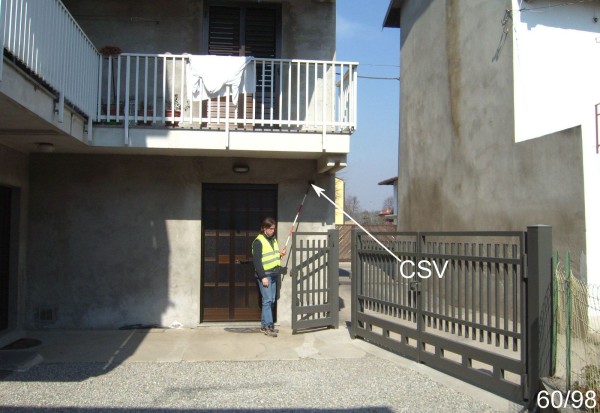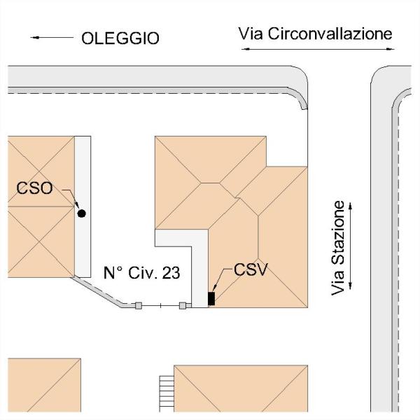 [{"simbolo_contrassegno":"P3","materializzazione":"(CSO) – Pozzetto in ghisa interrato nella rampa in cemento d'accesso al garage di sinistra (\"A\" non misurabile), coperto da chiusino in ferro."},{"simbolo_contrassegno":"V1","materializzazione":"(CSV) – Mensola infissa nella facciata interna del fabbricato, in prossimit\u00e0 dello spigolo destro."}]