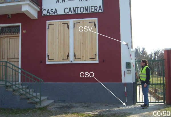 | Contrassegni | [{"simbolo_contrassegno":"P3","materializzazione":"(CSO) – Pozzetto in ghisa interrato alla base della facciata, in prossimit\u00e0 dello spigolo destro."},{"simbolo_contrassegno":"V1","materializzazione":"(CSV) – Mensola infissa sulla stessa facciata, in corrispondenza del CSO."}] |
