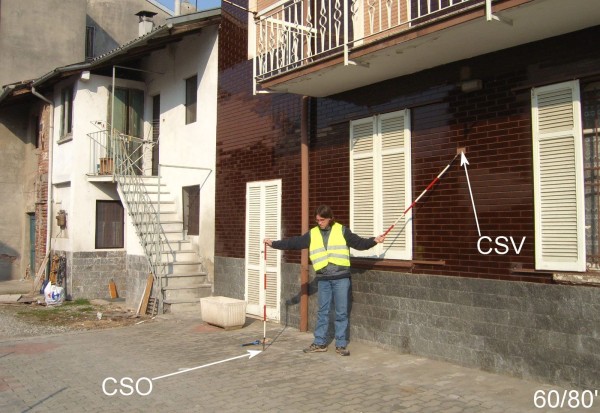 | Contrassegni | [{"simbolo_contrassegno":"P2","materializzazione":"(CSO) – Pozzetto in ghisa interrato nell'impiantito di fronte all'edificio, coperto da chiusino quadrato in cemento."},{"simbolo_contrassegno":"V1","materializzazione":"(CSV) – Mensola infissa nella facciata della casa a sinistra del CSO."}] |