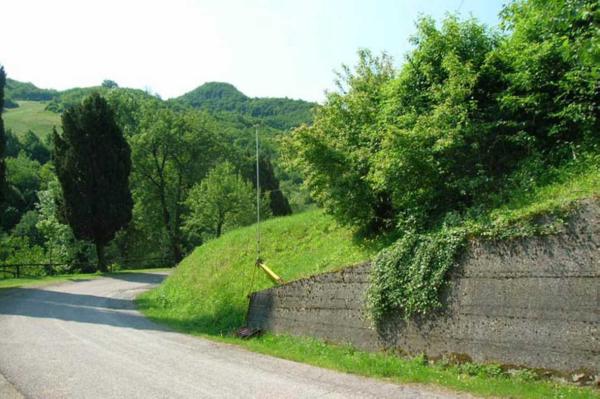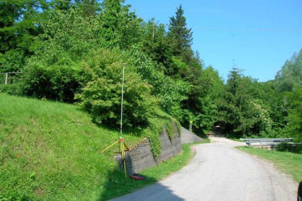 | Materializzazione | Centrino in acciaio inox infisso in corrispondenza dello spigolo del muro di sostegno lungo la strada nelle immediate vicinanze della Chiesa di Badia della Valle. |