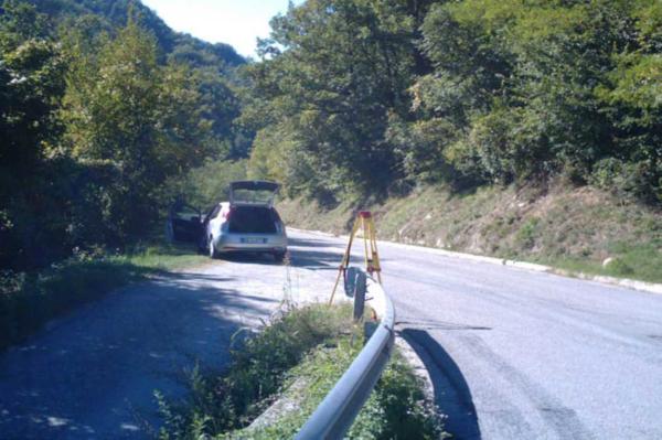 Centrino in acciaio inox infisso nella gettata di cemento che sostiene il guard – rail lungo la S.S. 306 nei pressi dell'incrocio per Salecchio.