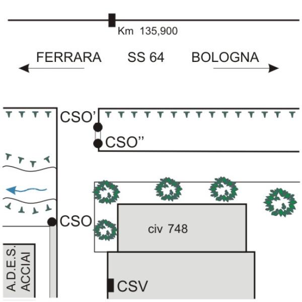 | Contrassegni | [{"simbolo_contrassegno":"B1","materializzazione":"(CSO) – Bullone infisso nella testa del muretto in c.a. di confine della fabbrica."},{"simbolo_contrassegno":"B2","materializzazione":"(CSO') – Chiodo anonimo della Rete Regionale di Controllo della Subsidenza n\u00b0 047100 infisso nel muretto in c.a.del ponticello d'accesso alle abitazioni ed a sinistra del CSO\"."},{"simbolo_contrassegno":"B4","materializzazione":"(CSO\") – Centrino universale infisso nel muretto in c.a. d'accesso al civico, 748 ed a destra del CSO'."},{"simbolo_contrassegno":"V4","materializzazione":"(CSV) – Piastrina di altro ente, C.B.V.V.R. (Consorzio Bonifica Valli di Vecchio Reno), infissa a sinistra dell'ingresso al fabbricato in mattoni ."}] |