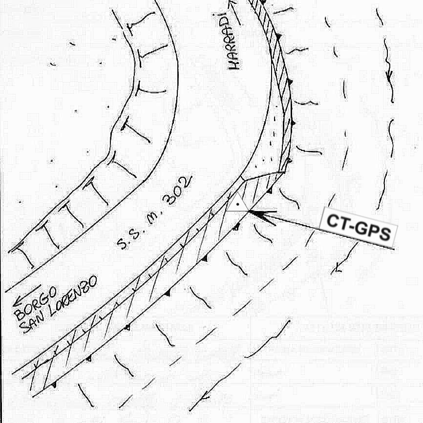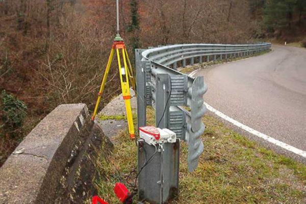 Centrino GPS della Regione Toscana in acciaio inox murato sulla sommità del muraglione di sostegno posto lungo la S.S. 302 Brisighellese – Ravennate in prossimità del Km 41+510.