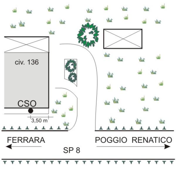 | Contrassegni | [{"simbolo_contrassegno":"P4","materializzazione":"(CSO) – Pozzetto protetto da chiusino in cemento anonimo di cm 35×35, posto sul marciapiede lato sinistro della colonica a circa 3,50 mt dallo spigolo."}] |