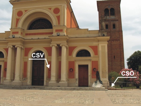 | Contrassegni | [{"simbolo_contrassegno":"P4","materializzazione":"(CSO) – Pozzetto quadrato protetto da chiusino in cemento anonimo sito lungo il fianco destro in prossimit\u00e0 dello spigolo con la facciata."},{"simbolo_contrassegno":"V2","materializzazione":"(CSV) – Piastrina a barilotto infissa sulla facciata, alla destra della porta centrale d'ingresso alla chiesa."}] |