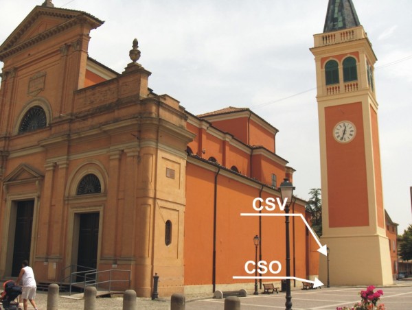 | Contrassegni | [{"simbolo_contrassegno":"P4","materializzazione":"(CSO) – Pozzetto quadrato protetto da chiusino in cemento anonimo, posto alla base della torre dell'orologio della chiesa."},{"simbolo_contrassegno":"V2","materializzazione":"(CSV) – Piastrina a barilotto infissa in corrispondenza del CSO."}] |
