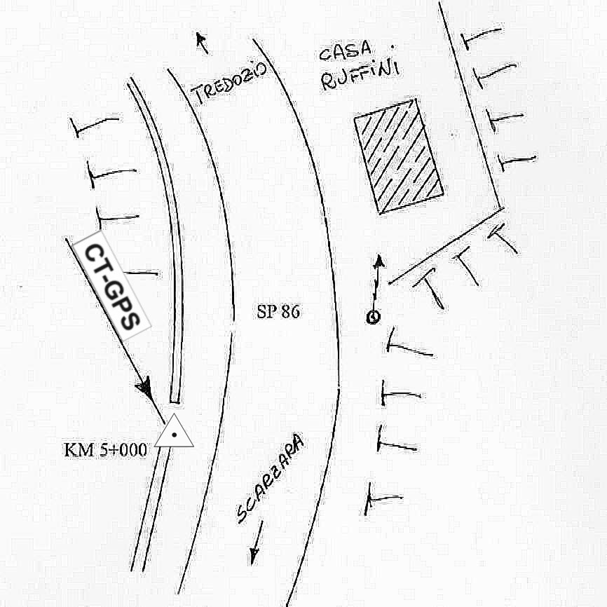 | Materializzazione | Centrino in acciaio inox infisso su muretto di sostegno situato circa 500 metri prima della Località di Scarzara, all'altezza del km 5 della S.P. 86. |