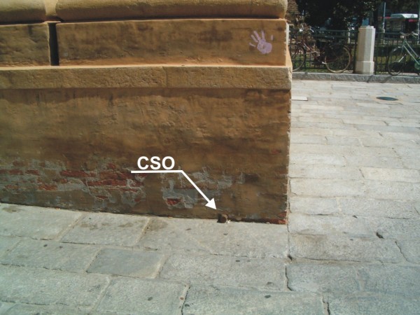 | Contrassegni | [{"simbolo_contrassegno":"B1","materializzazione":"(CSO) – Bullone anonimo infisso in prossimit\u00e0 dello spigolo destro della facciata . Il bullone \u00e8 poco sopra la pavimentazione della piazza."}] |