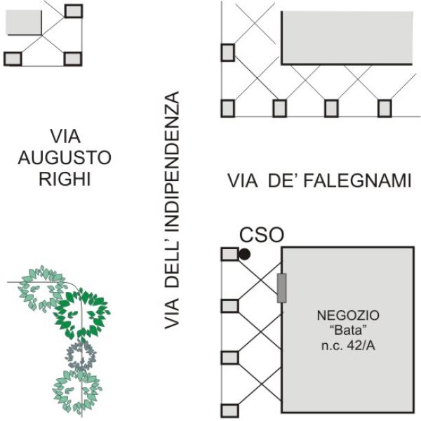 | Contrassegni | [{"simbolo_contrassegno":"B1","materializzazione":"(CSO) – Bullone della Rete Regionale di Controllo della Subsidenza n\u00b0 051050, infisso all'interno della colonna d'angolo del porticato fra via Indipendenza e via D\u00e8 Falegnami."}] |