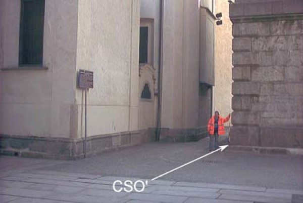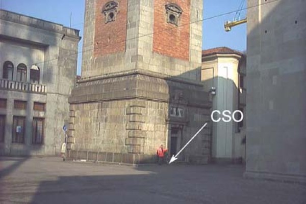 | Contrassegni | [{"simbolo_contrassegno":"P3","materializzazione":"(CSO) – Chiusino in ghisa posto alla base dei gradini, a sinistra entrando, della facciata del campanile di San Vittore, verso il Battistero di San Giovanni."},{"simbolo_contrassegno":"B3","materializzazione":"(CSO') – Circolo inciso sullo spigolo sinistro dello zoccolo in pietra, della facciata opposta a quella dove \u00e8 materializzato il CSO, verso la Basilica di San Vittore e di fronte alla gradinata della piazza di San Vittore."}] |