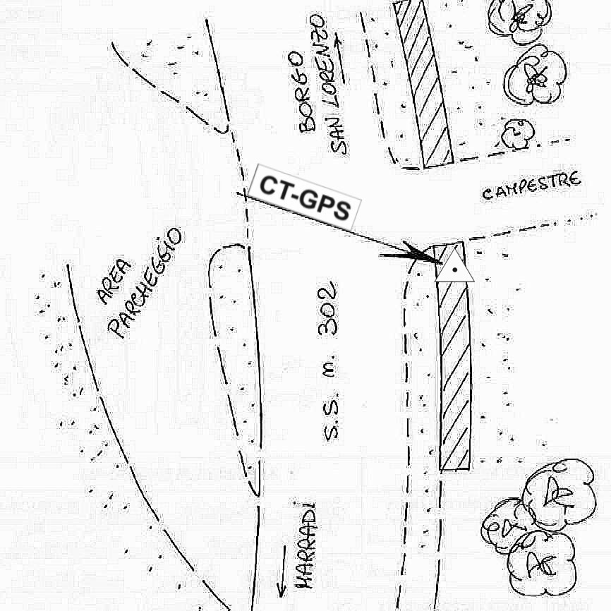 | Materializzazione | Centrino GPS della Regione Toscana in acciaio Inox infisso sulla sommità del muro di sostegno posto a lato strada lungo la S.S. 302 Brisighellese – Ravennate, nei pressi del Km 52+200 e davanti ad un'area parcheggio. |