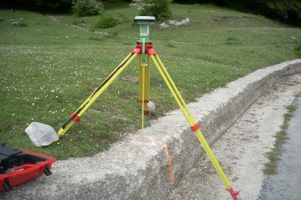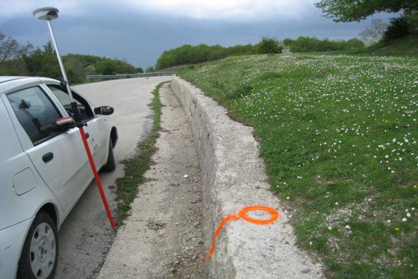 Centrino metallico orizzontale di tipo chiodo con rondella ARPAB Regione Basilicata infisso sul muro in C.L.S. di contenimento